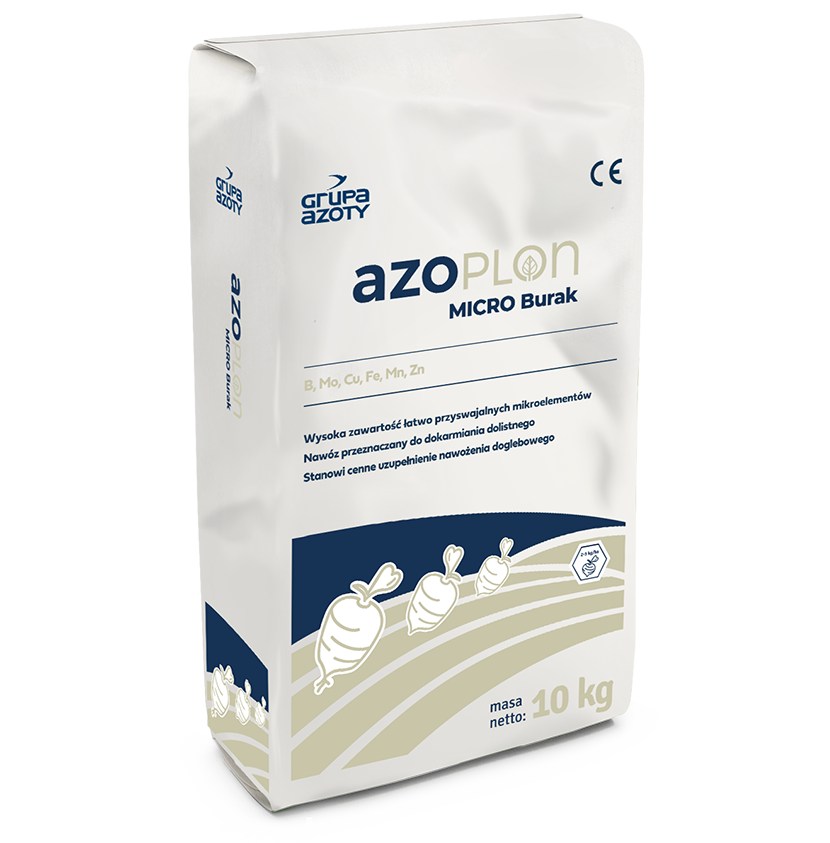 AZOPLON MICRO Burak to nawóz zawierający niezbędne dla prawidłowego wzrostu i rozwoju buraka cukrowego mikroskładniki pokarmowe. Nawóz przeznaczony jest do dolistnego dokarmiania. Zalecany w okresie największego zapotrzebowania buraka cukrowego na mikroskładniki pokarmowe lub w warunkach osłabienia roślin przez czynniki stresowe.
